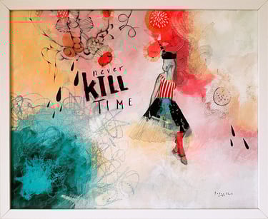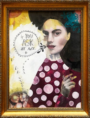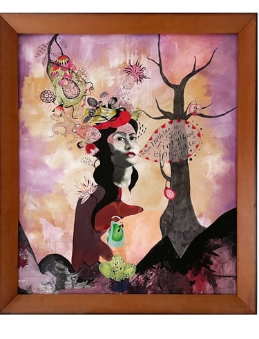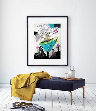 By blending words, details, and colors, I aim to create artworks that invite viewers to take a moment, reflect, and interpret the work in their own personal way.